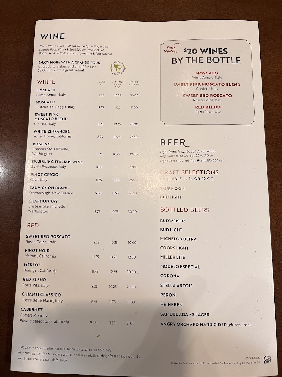 Olive Garden Italian Restaurant Menu