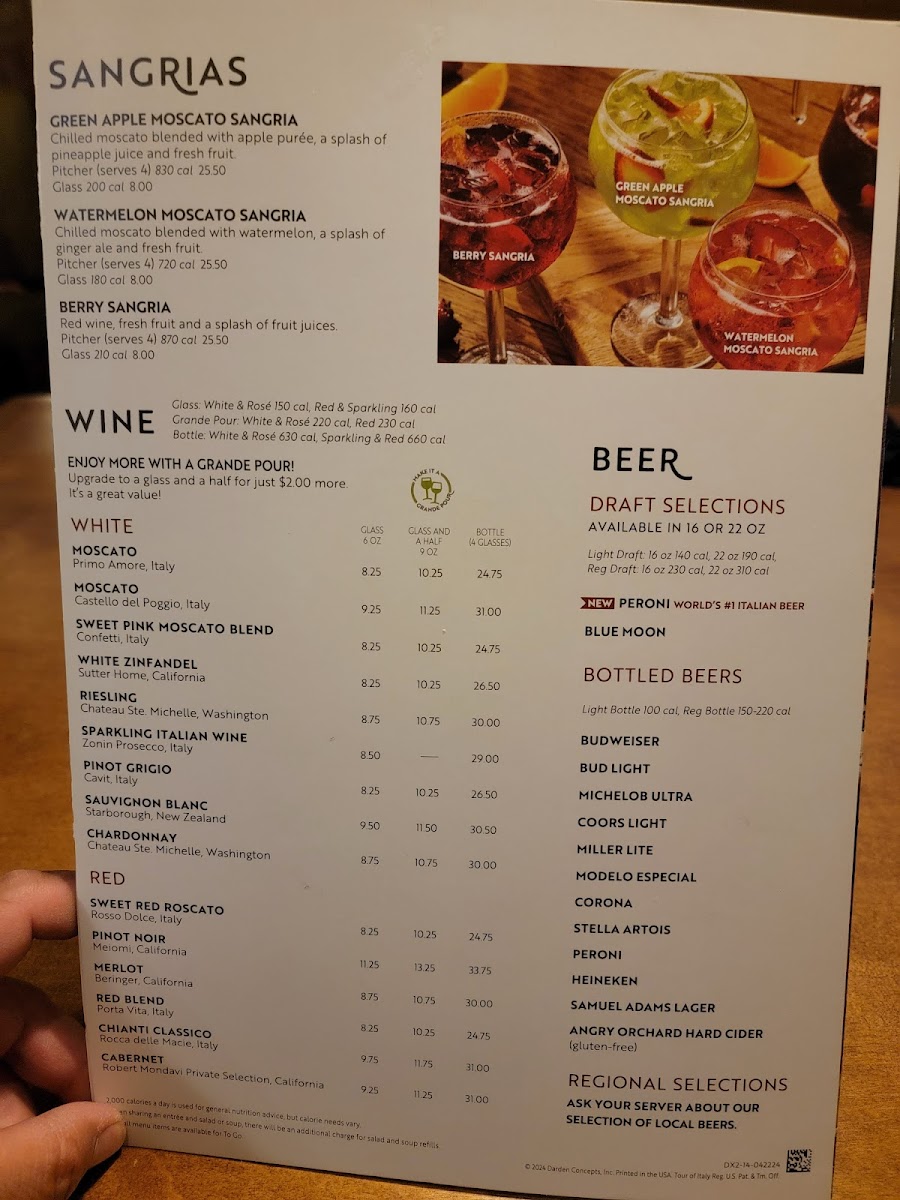 Breadsticks and unlimited soup and salad offer a familiar, comforting experience that fits well with both family dinners and easy weekday outings. To complement meals, the wine bar serves a thoughtful selection of wines and sangrias crafted with fresh fruit and chilled wine blends, providing a pleasant, relaxed way to unwind and enjoy the company around you.
